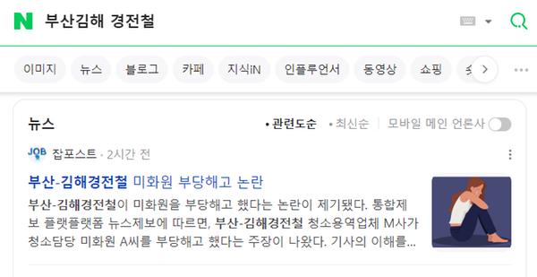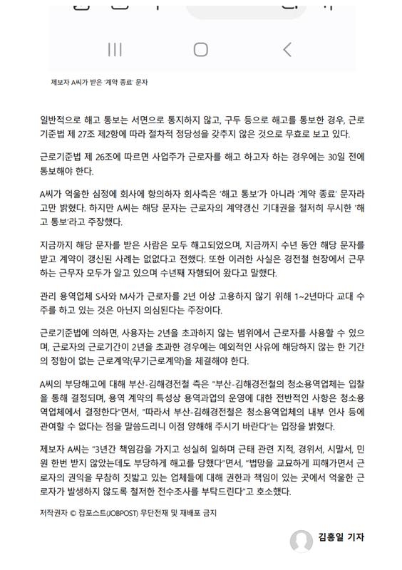 부산김해 경전철 미화원 부당해고 건으로 언론에서 관심을 가져 주시고