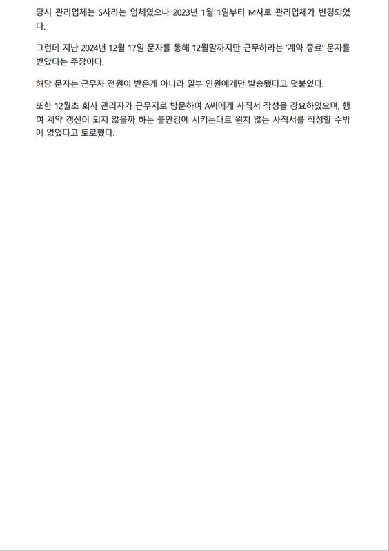 - 저는 2024년 12월 31일 부로 부당해고 되었습니다.