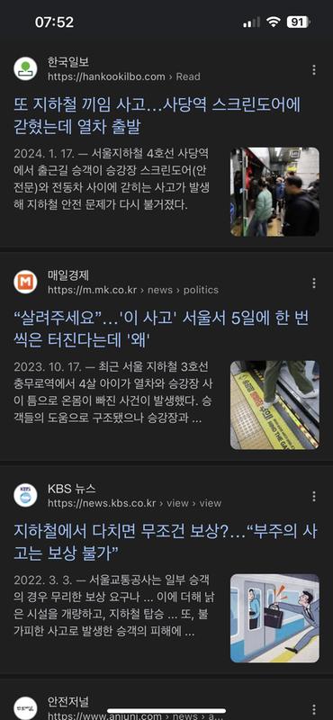 5. 케이스는 다를 수 있겠지만 전동차 관련 안전사고는 멀리 떨어져 있지 않다고 판단되어
